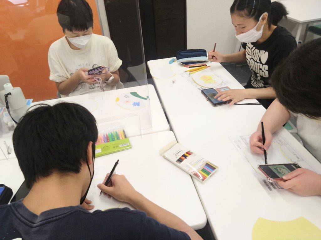 午前中は百均のキットを使って好きなイラストを描きうちわ制作。